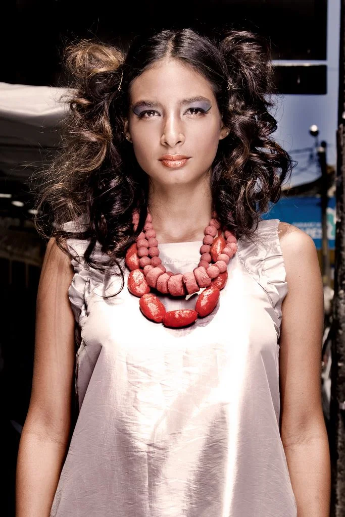 A jornalista e produtora de Moda , Júlia Salgueiro, desenvolveu uma coleção de colares feitos em papel machê para a marca Lady Murph.