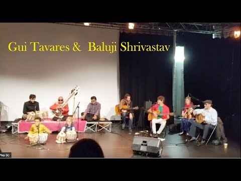 Gui Tavares Brasileiro e Baluji Shrivastav Indiano, lideram e tocam com o grupo composto por três músicos brasileiros, dois indianos + convidados durante uma apresentação de lançamento no Rich Mix em 19 de outubro de 2019. Este evento oferece uma oportunidade para os participantes experimentarem a fusão de duas culturas através da música, acessando diferentes técnicas vocais, ritmos e dois idiomas diferentes.