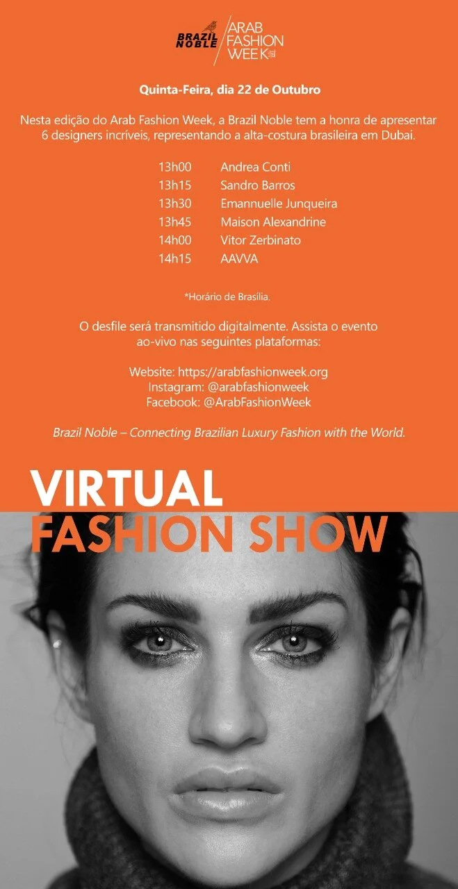 Marcado para o dia 22 de outubro de 2020 em Dubai, desfile conta com a participação de cinco renomados estilistas brasileiros e, pela primeira vez, será 100% digital
